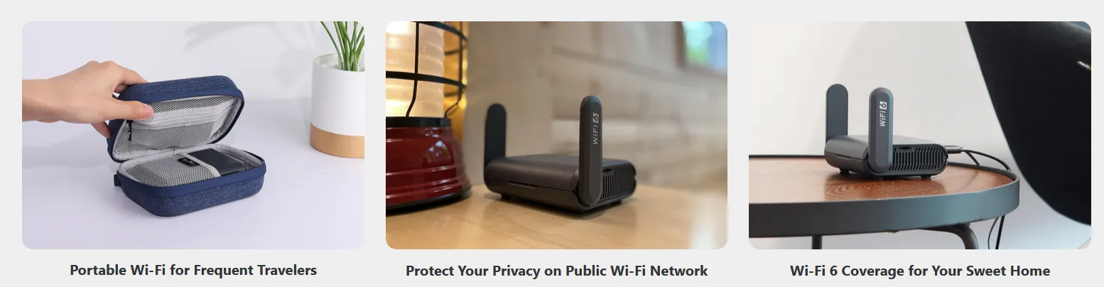 【Repeater for Public, Hotel WiFi】Convert a public network(wired/wireless) to a private network(wired/wireless) for secure surfing. Work with Captive Portal. (Note: Most of the Free Public Wi-Fi hotspot set a time limit for users, which will disconnect your devices once the time is over. To deal with this situation, please reconnect your router to the wifi.)