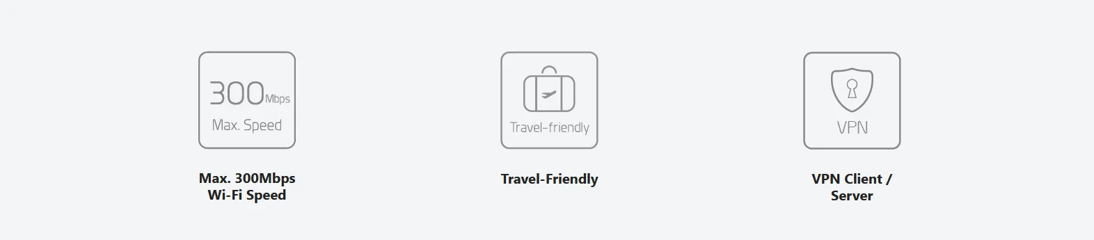 Max. 300Mbps Wi-Fi Speed 1 x 2.0 USB Port 1 x Toggle button 2 x Ethernet Ports