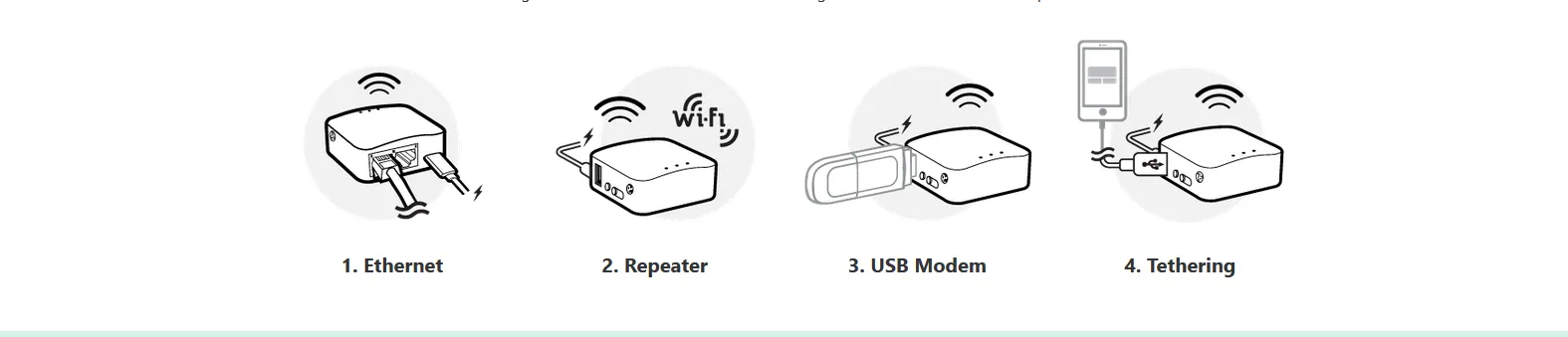 Mango can be connected to the Internet through Ethernet cable or wireless repeater