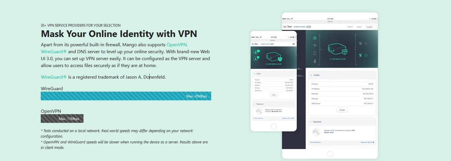 Security & Privacy: OpenVPN and WireGuard pre-installed, compatible with 30+ VPN service providers.