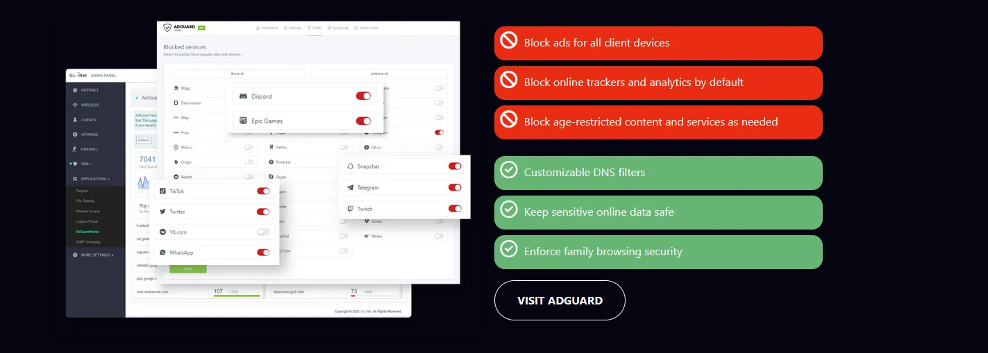 Automatically Redirects Network Traffic: Pre-installed with OpenVPN and WireGuard® supporting 30+ VPN services. It automatically redirects all network traffic within the connected network to your VPN service or server, including guest devices and client devices that are not capable of running VPN.
