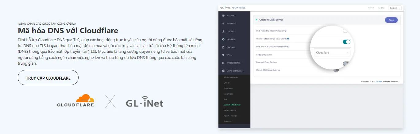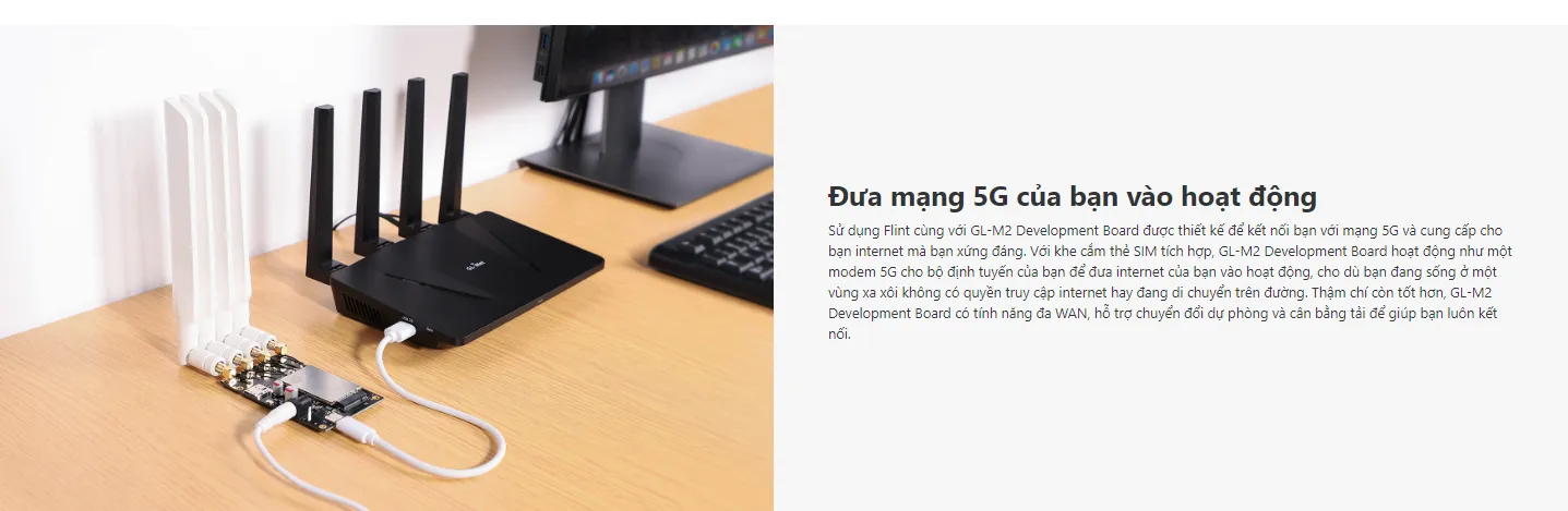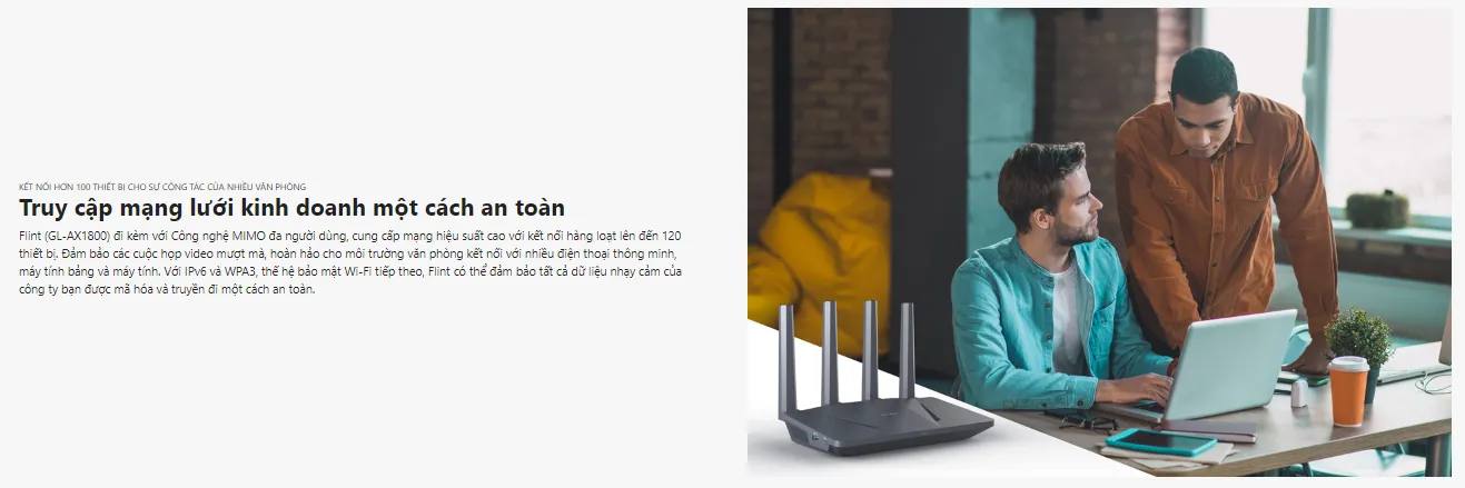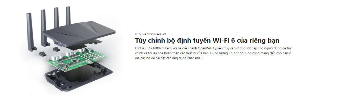 Flint (GL-AX1800) là bộ định tuyến Wi-Fi 6 băng tần kép với tốc độ kết nối lên đến 600Mbps (2,4GHz) + 1200Mbps (5GHz). Nó có thể chạy tốc độ mã hóa VPN lên đến 667Mbps và lưu trữ máy chủ VPN. Flint hoàn hảo cho việc truyền dữ liệu lớn, kết nối thiết bị hàng loạt hoặc chơi game có độ trễ cực thấp.