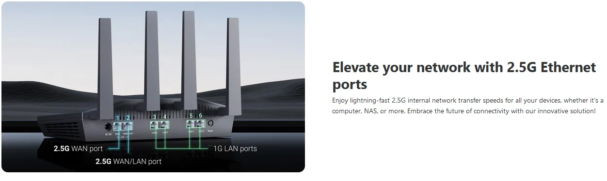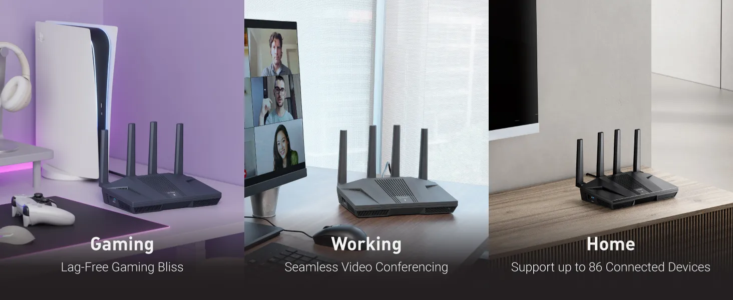 ***Please update the firmware upon initial setup of the router, as it greatly enhances the device's performance and ensures a superior user experience.*** 【WiFi 6 Standard with ultra-low latency】Wi-Fi 6 speeds up to 6 Gbps to let you enjoy smoother 4K streaming, gaming, video calls and more, DDR4 1GB / eMMC 8GB