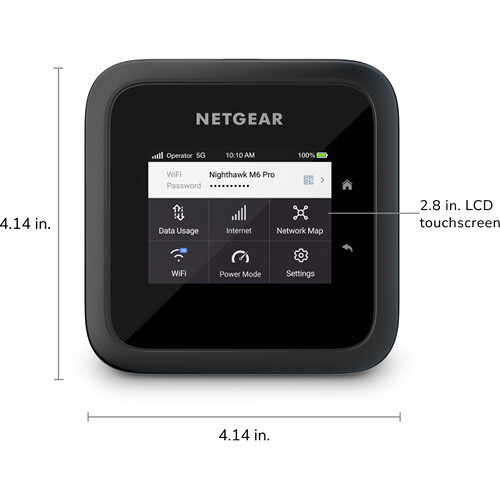 Simply purchase a SIM card from a compatible carrier and install it into this unlocked device. The M6 Pro allows you to swap out SIM cards and data plans when traveling across 125 countries. The included 5040 mAh battery provides up to 13 hours of power, allowing you to work throughout the day with minimal interruption. You can remove the battery and plug the Nighthawk M6 Pro into a power outlet to increase the coverage from 1000 to 2000 square feet. The 2.5G Ethernet port may be used for direct connections to laptops, switches, and other devices. Use the convenient 2.8" LCD touchscreen to quickly set up, manage, and monitor the Nighthawk M6 Pro.