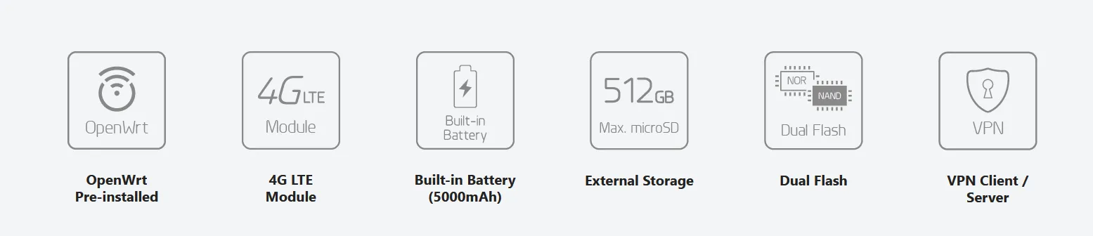 Puli (GL-XE300) is a portable 4G LTE Industrial IoT Gateway that is perfect for home, business, and IoT solutions. With its OpenWrt-supported feature and larger storage compatibility, it is designed for you to develop a DIY IoT project. It also comes with a 5000mAh rechargeable battery, so you can bring it anywhere with you!