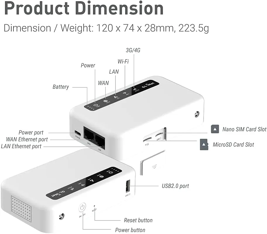 Puli (GL-XE300) is a portable 4G smart router that is perfect for home, business and IoT solution. With its OpenWrt supportedfeature and large storage compatibility, it is designed for you to develop DIY IoT project. It also comes with a rechargeable battery, so you can bring it anywhere with you!