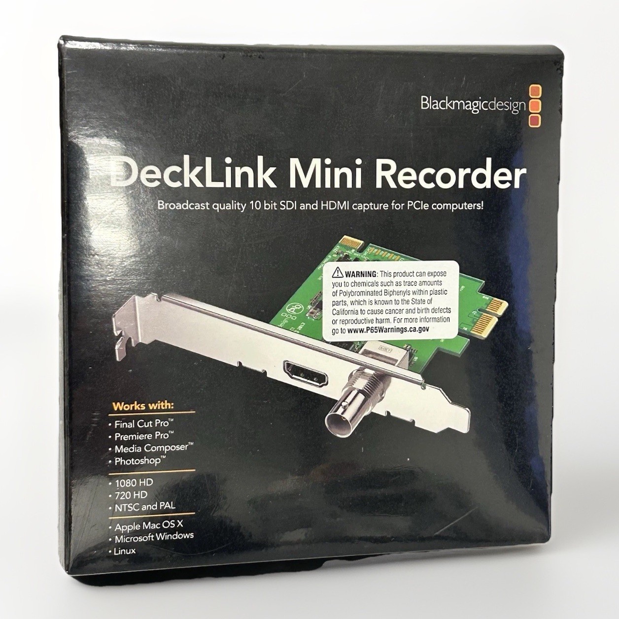 Record HD video over SDI or HDMI with the Blackmagic Design DeckLink Mini Recorder HD. This 1-lane PCIe slot playback card with SDI and HDMI inputs is, compatible with 1-, 4-, 8-, and 16-lane PCIe slots, allowing you to capture up to DCI 2K video over SDI, and HD video over HDMI 2.0.