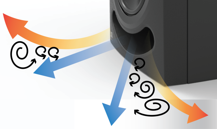 On most port tubes, air leaves at different speeds from different points of the opening, creating noisy turbulence. This turbulence can be heard as "chuffing," or an audible air sound coming from the monitor. This sound will add to the noise floor and obscure the details of the low end.